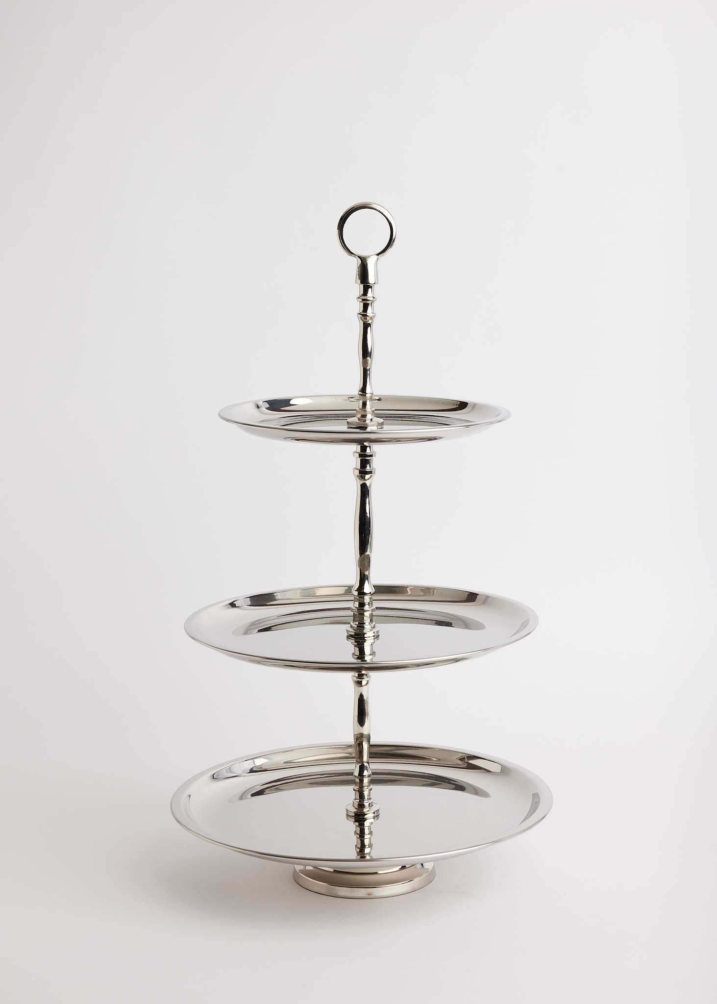 Bring back a touch of the Renaissance with this grand, three-tiered stand - complete with a raw nickel finish. Layer with finger sandwiches, desserts or a tumble of fresh fruits. Measures 62 cm high, 31 cm wide.
